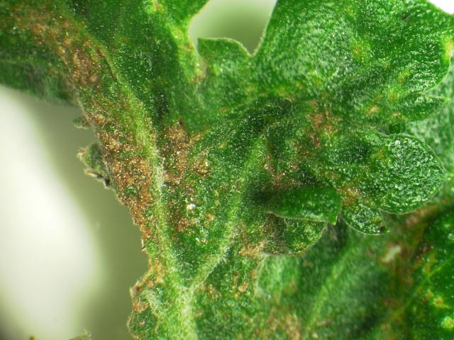 キクビラハダニ 葉が奇形になり一部が壊死する