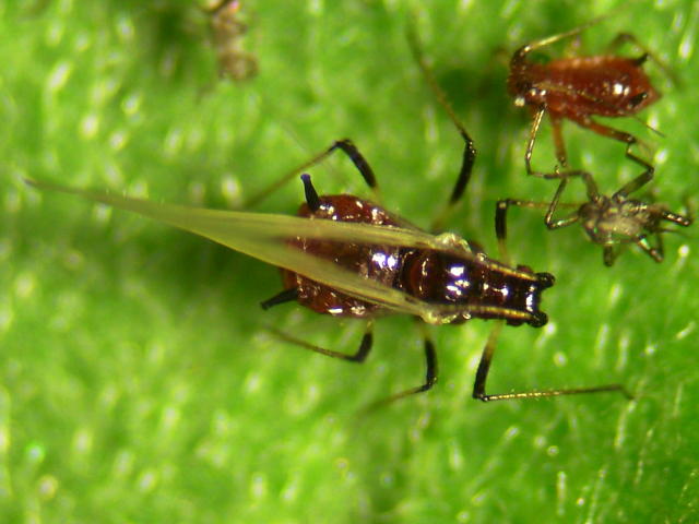 キクヒメナガアブラムシ成虫(体長2mm、有翅)