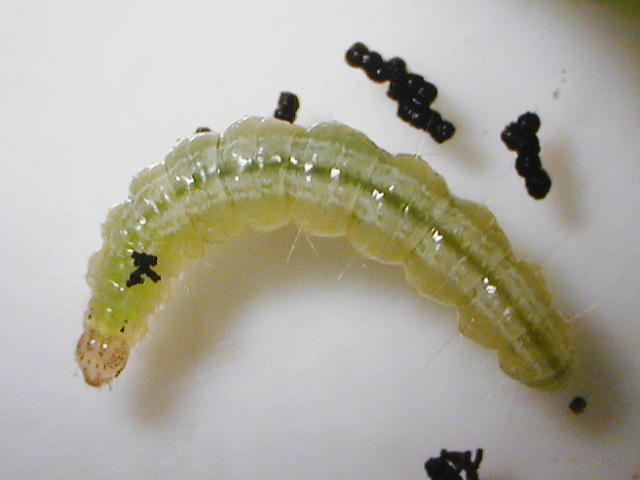 クロモンキノメイガ老齢幼虫(体長15mm)
