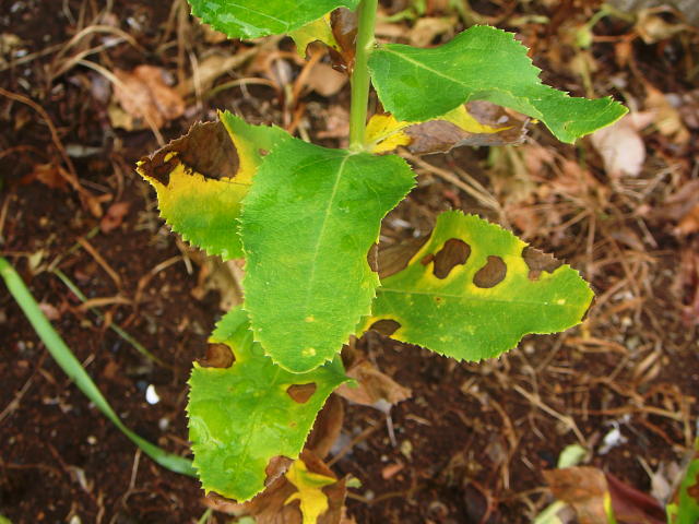 葉枯病 褐色円形病斑の周囲に黄色のハローを生じる