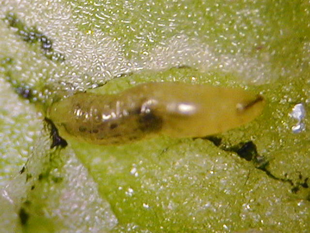 トマトハモグリバエ幼虫(体長2mm)