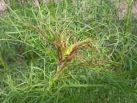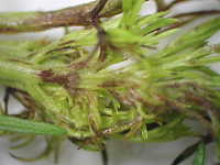 | 発生時期:8月 被害:成虫及び幼虫の加害により、新葉が房状になり、褐変する。 |