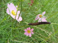 参考:雑草のイヌタデ、エノキグサ等が食草であるが、移動してコスモス畑やダイズ畑で幼虫が見られることがある。