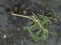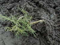被害:幼虫による地際部の茎の食害