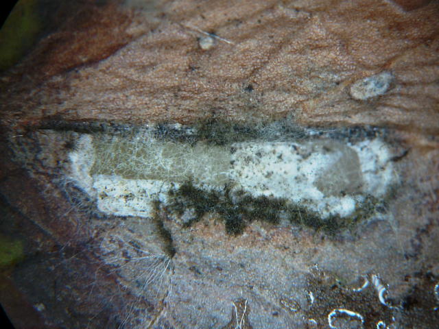 アルタナリア属菌による葉枯れ 白化部分の黒かび