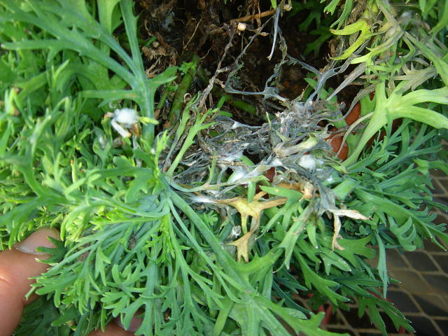菌核病 菌糸がまとまり菌核になる