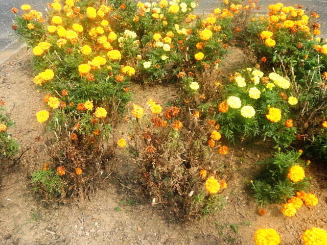 湿害 枯死株(中央)と被害株(上)