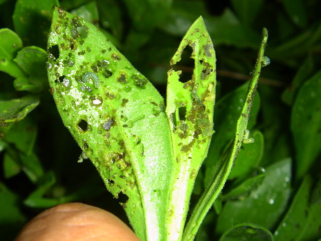 ヨトウムシ若齢幼虫による被害葉