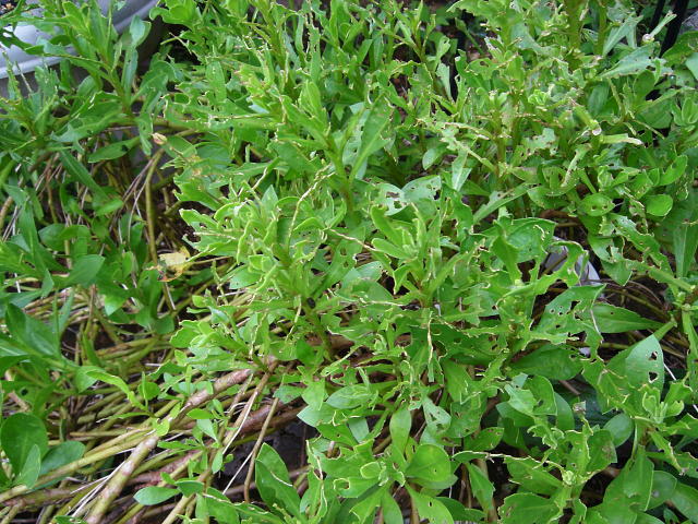 ヨトウムシ中齢幼虫による被害葉