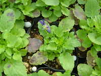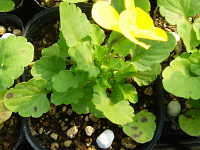 | 発生時期:10月〜11月 病原:糸状菌(かび) 伝染方法:土壌中に残った発病葉上の病原菌が伝染源となる。 被害:葉に黒褐色の斑点を生じる。 |
