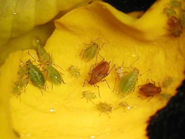 モモアカアブラムシ成虫(体長2mm)及び幼虫