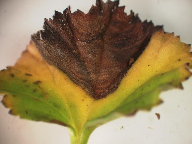 灰色かび病 褐変部には同心輪紋が見える
