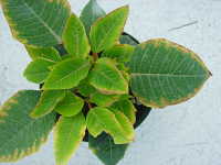 葉縁に暗褐色の斑点を生じる