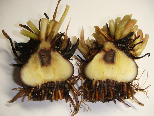 葉腐細菌病 塊茎内が黒褐変している