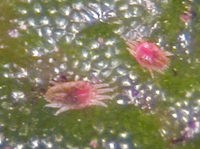 チャノヒメハダニ第2若虫(体長0.25mm)及び成虫(体長0.3mm)