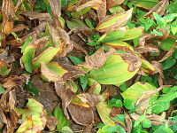 ほ場に残った発病葉上の病原菌が伝染源となる。