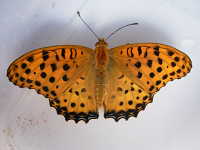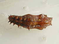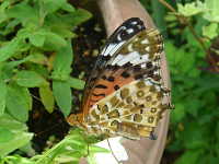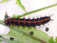 | 発生時期:8月〜9月 被害:幼虫による葉の食害 参考:温暖化により発生が増加。はねの先端が黒く華やかな色彩で、一回り大きい方が雌。 |
