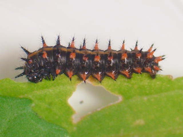 ツマグロヒョウモン中齢幼虫(体長13mm)
