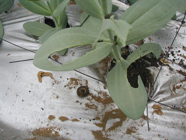 ヨトウムシ老齢幼虫と被害葉