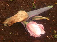 被害:開花期頃から茎葉全体が紫色に変わり、次第に退色して萎凋枯死する。