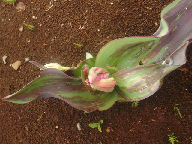 モザイク病 蕾がモザイク状で、葉に紫筋
