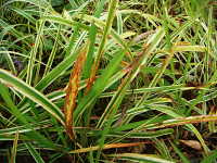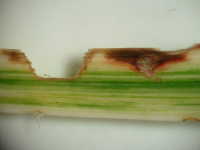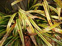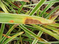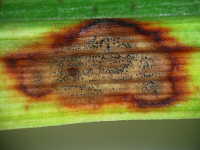 | 発生時期:3月〜4月,、9月〜10月 病原:糸状菌(かび) 伝染方法:発病葉上の病原菌が水はね伝染する。 被害:葉に周囲が赤褐色で内部が灰褐色の病斑を生じ、病斑内に小黒点(分生子層)を散生する。病斑は穴があきやすい。 |