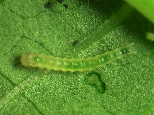 ワタノメイガ若齢幼虫(体長5mm)