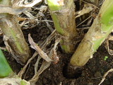 (3)防除対策 ア 施設では、梅雨明け後に30日以上、太陽熱利用による土壌消毒を行う。(センチュウ防除にも有効である。) 処理後の再汚染を防止するため、処理前に施肥、畝立てを行い、終了後にフィルムマルチを除去し、耕耘しないで定植を行う方法が望ましい。