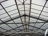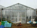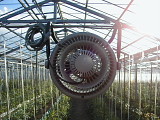 4 ハウス栽培における防除対策 (1)ハウス栽培では、防虫ネットを設置し、媒介昆虫の侵入を防ぐ。出入り口や側窓だけでなく、天窓にも設置が必要である。 防虫ネットの目合いは、アザミウマ類・コナジラミ類の侵入を防ぐためには0.4mm以下が必要であるが、その場合、湿度が高まり、病害が発生しやすくなるので、循環扇の設置を合わせて行うことが望ましい。