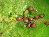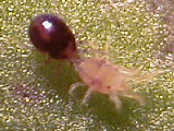 1 土着天敵の利用 6月から9月は、土着天敵の活動が盛んである。 (1)微小害虫の被害が大きい場合(ナス) ハダニ類、コナジラミ類、アザミウマ類、ハモグリバエ類、アブラムシ類などの微小であるが増殖力の高い害虫については、天敵による被害抑制効果が高いので、できるだけこれを活用するため、天敵への影響の少ない農薬の使用に努めることが重要である。 (参考)微小害虫とそれを捕食する天敵 (太字は重要なもの)