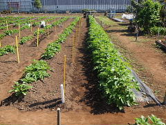 1 黒マルチは雑草防除効果が高い 大学農園では、職員が試食又は学生のお持ち帰り用に栽培する野菜は、雑草防除を主目的として、すべて黒マルチを張って栽培している。 通路に生える雑草は、立鎌で除草したり、除草剤を散布して防除できるが、野菜の間に生えた雑草は手又は手鎌で抜き取るしかないので、大変手間がかかるからである。