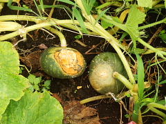 1 多くの野菜は陽性植物(1日6時間以上直射日光が当たる場所を好む)で、日陰では育たない 家庭菜園で野菜が農家の畑のようにりっぱに生育しない主な原因は、日照不足と土づくり(堆肥施用等)の不足である。 2 主な陽性植物の野菜 ナス科:トマト、ナス、ピーマン、トウガラシ ウリ科:スイカ、キュウリ、カボチャ マメ科:ダイズ、インゲン、サヤエンドウ、ソラマメ アブラナ科:キャベツ、ハクサイ、ブロッコリー、ダイコン アオイ科:オクラ イネ科:トウモロコシ セリ科:ニンジン ヒルガオ科:サツマイモ ユリ科:タマネギ 3 スイカやカボチャは、日射が強いと果実が日焼けを起こす スイカやカボチャは陽性植物であるが、日射が強いと葉で隠れていない果実は日焼けを起こしやすい。 このため、大学農園では、100円ショップで購入したカゴをかぶせて日焼けを防止している。
