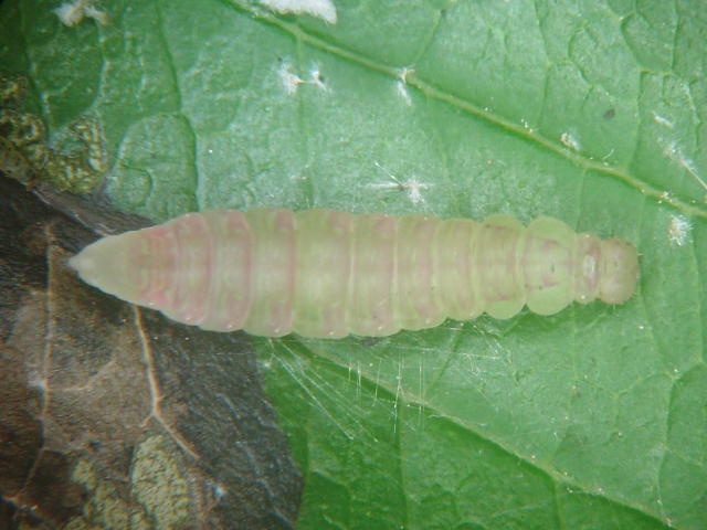 フタテンシロカギバ蛹化直前幼虫(体長14mm) 赤みを帯びる