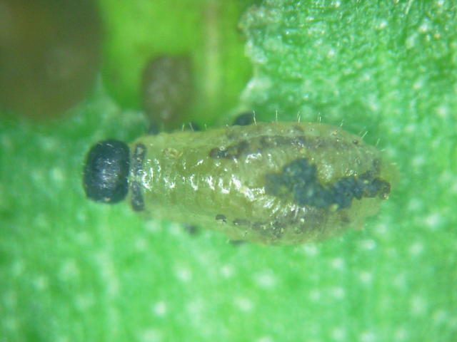 キバラルリクビホソハムシ若齢幼虫(体長2mm)