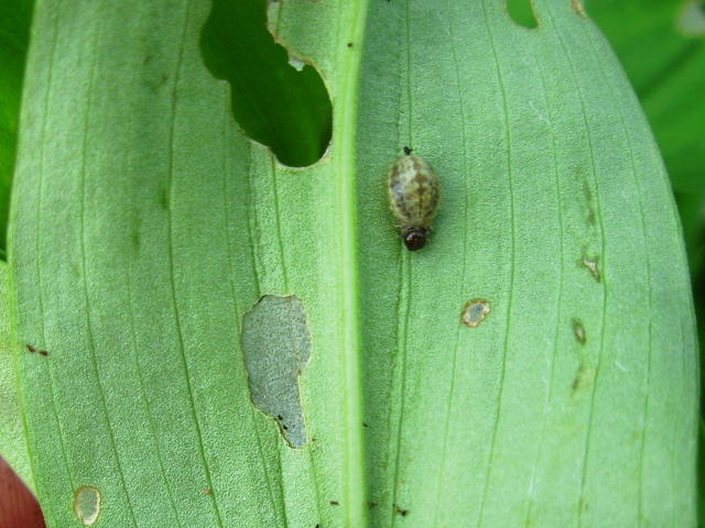 キバラルリクビホソハムシ幼虫による被害葉 葉裏で食害
