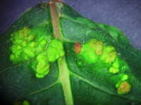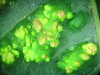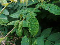 | 発生時期:6月〜8月 被害:成虫及び幼虫によるヌルデの葉の虫こぶ形成 |
