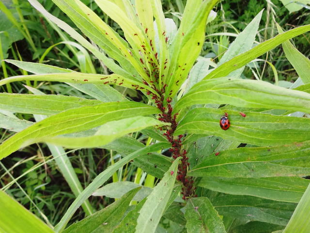 セイタカアワダチソウヒゲナガアブラムシのコロニー