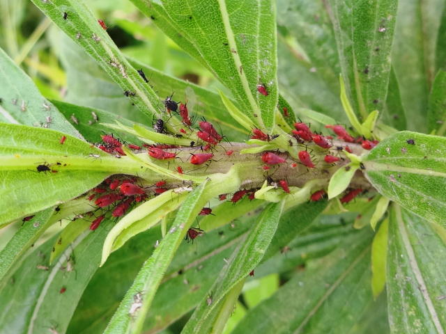 セイタカアワダチソウヒゲナガアブラムシのコロニー