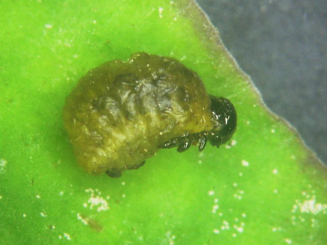 トホシクビボソハムシ若齢幼虫(体長3mm)