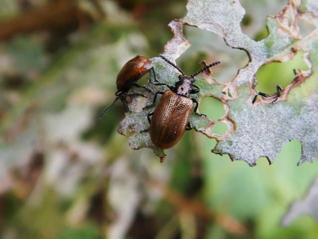 トホシクビボソハムシ成虫によるクコの葉の食害