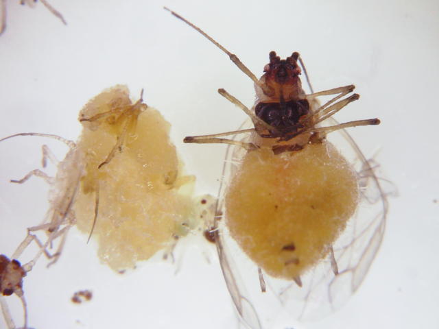 コメント:昆虫疫病菌に寄生されたモモアカアブラムシ