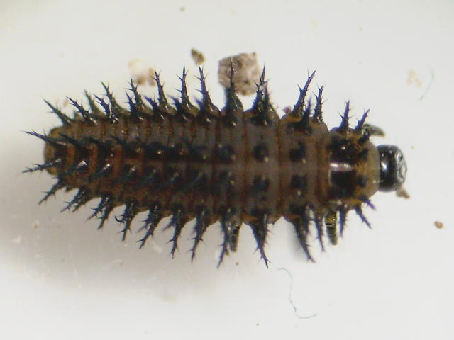 コメント:アカボシテントウ中齢幼虫(体長5mm)