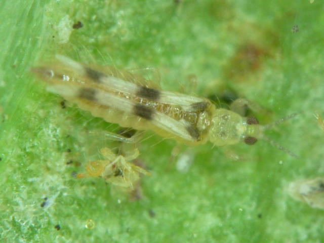 コメント:ハダニアザミウマ成虫(体長1.1mm)