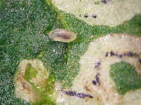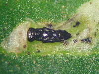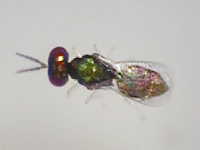 | 活動時期:春〜秋 生息地:畑(トマトなど) 寄生する害虫:ハモグリバエ類幼虫(成虫が麻痺させたハモグリバエ類幼虫のそばに産卵する) |