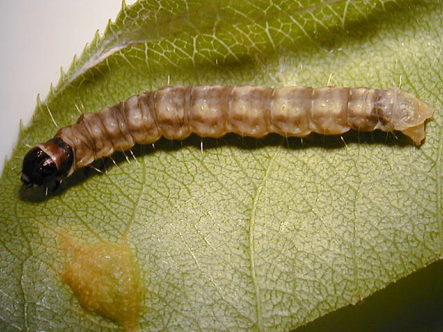 チャハマキウスヒメバチに寄生されたチャハマキ幼虫