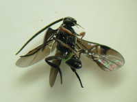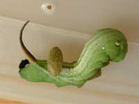 参考:ヒメバチ類成虫はチョウ目幼虫の体内に産卵し、幼虫がその体内で生長する。