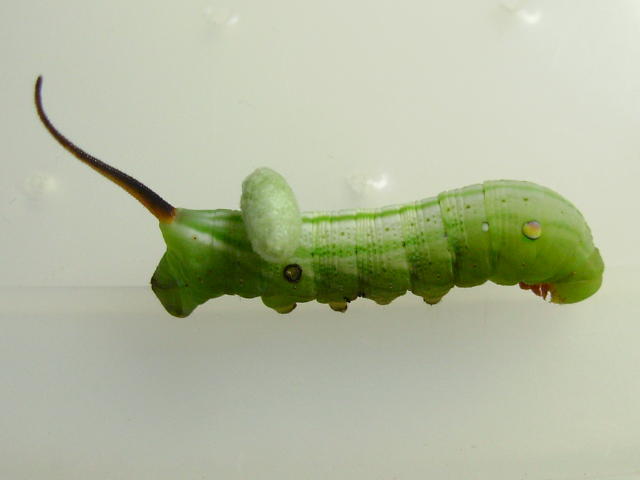 キイロスズメに寄生したヒメバチ類繭(長径8mm)