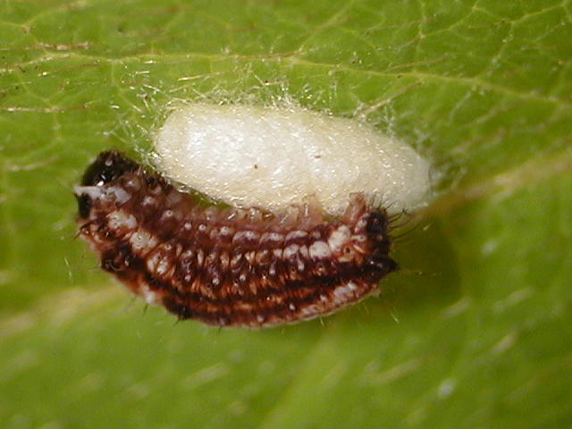 ベニモンアオリンガに寄生したヒメバチ類繭(長径3mm)