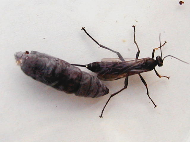 オオウンモンクチバ蛹から出てきたヒメバチ類成虫(体長18mm)