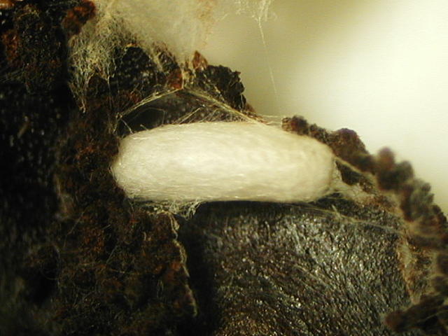 モッコクハマキに寄生したヒメバチ類繭(長径4mm)